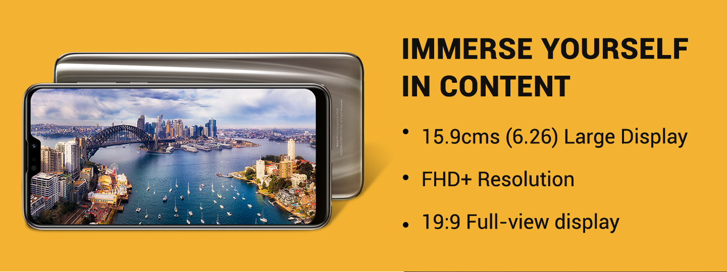 इसमे आपको मिलती है 6.3 इंच की FHD+ गोरिल्ला गिलास 5 के प्रोटेक्शन के साथ। इसका स्क्रीन रेसोलुशन है।2340×1080, 409 ppi के साथ आता है। इसका कंट्रास्ट रेश्यो 1500:1 है। इसमे आपको गोरिल्ला गिलास 5 की प्रोटेक्शन मिलती है। जो कि काफी अच्छी बात है।